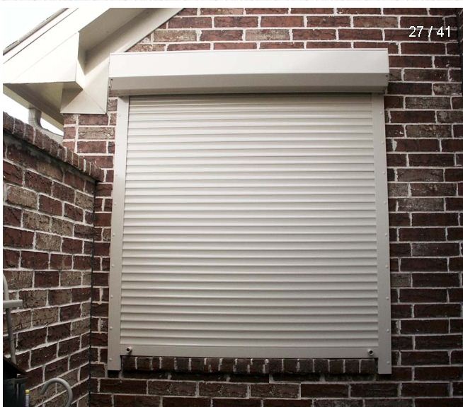The uniquely neat finish of security window shutters is evident when they are either built-on to an existing building.